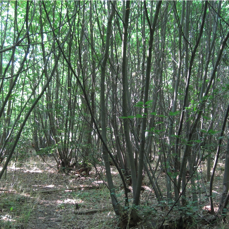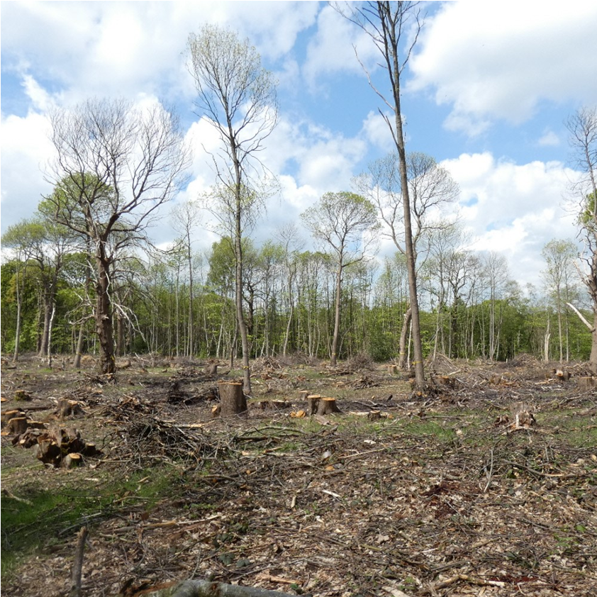 The ‘fences’ you may notice bordering coppiced areas are called ‘dead hedges’. Dead hedging involves using the smaller material obtained from the coppicing operation. A double row of vertical stakes is driven in at roughly 1 metre intervals around the area and brashings (thin branches) are laid between the stakes to form the hedge.